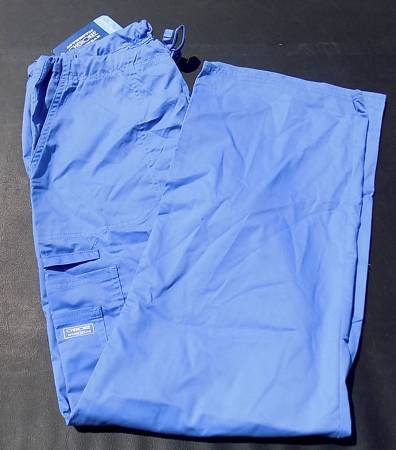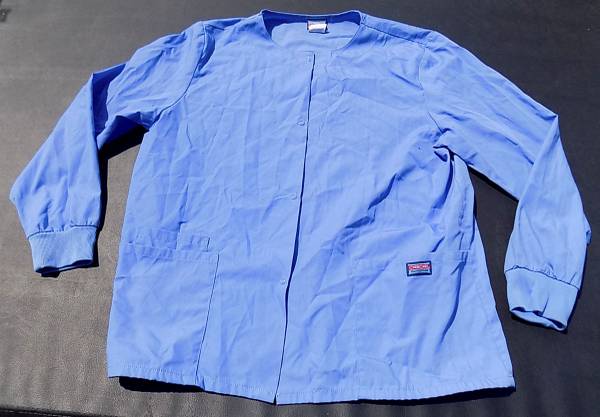 I'm selling a new with tags Cherokee blue snap front scrub jacket with 2 scrub pants in women's size medium - $15 for everything.