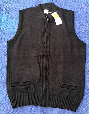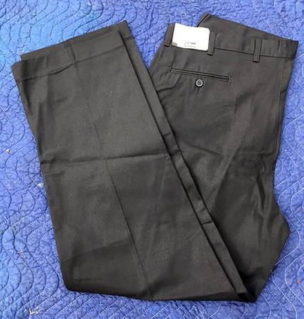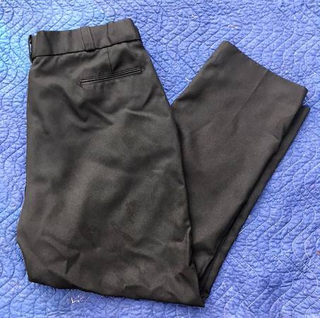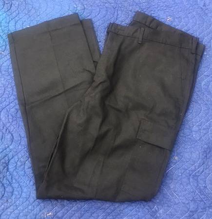 I'm selling men's black work pants in size 40x32 - three pairs of Tact Squad polyester pants with two pairs that need waist tabs - $40 for all, Edwards 65% polyester/35% cotton pants (1 new and 2 used) - $30 for all or a new with tags A+ zip front cardigan vest with pockets in size 2XL - $20