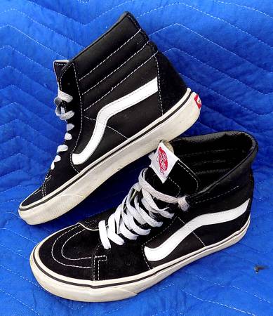 Gently worn Vans SK8 black/white high top sneakers in women's size 9/men's size 7-1/2 - the first $15 gets them.