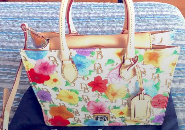This stunning Authentic Dooney & Bourke Floral Print Large Janine Satchel is in excellent condition.