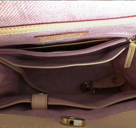 The satchel features a metal Dooney & Bourke logo plate in front; leather Dooney & Bourke hang tag * sturdy bottom with leather patches and 4 "feet" for protection * large leather flap with snap closure * roomy interior with zippered and open slip pockets; the opposite side features an open as well as flap/snap pocket.