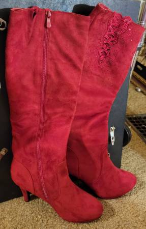 NEW Size 8 Red Suede "DreamPairs" Boots 3 inch heels Measures 20 inches from top to bottom. Beautiful pair of boots! Never Worn Mint condition! Also available in Black!!!