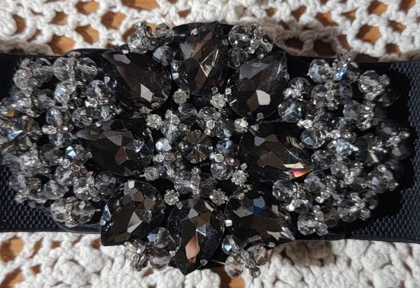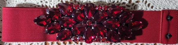 NEW set of 3 LUXURY Rhinestone stretch Belts in RED, BLUE & GUNMETAL...