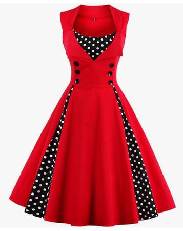 Women's Audrey Hepburn Vintage Style Rockabilly Swing Dress Medium Never EVER WORN! Beautiful Red and Black cocktail dress.
