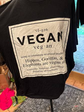 huge shirt i used it to sleep in but hey if you’re vegan maybe you can wear it for fun **** leaving for navy need money selling lots of clothes check out my profile for more, WILL DO BUNDLE DEAL IF...