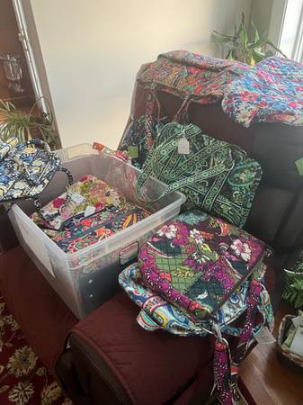 Over 70 new Vera Bradley bags with tags for sale. They will be either $20, $30 or $40, That’s all. If you buy more the 3 we will discount even more. CASH ONLY!!!Get your Christmas shopping done early. Tell your sister, tell your friends. Bring them all. Won’t last long at these prices. Please don’t ask if we have certain patterns or styles. You must come out and look to see. We will not respond to. Is it available. Thanks.