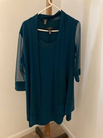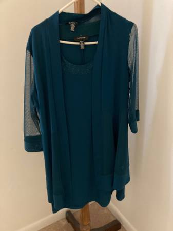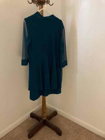 R&M Richards Green Dress w/Sheer Jacket, Size L Preowned Any questions, please ask.