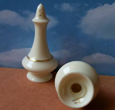 They are 4 inches tall. Ivory color with 24K Gold trim. Perfect condition.