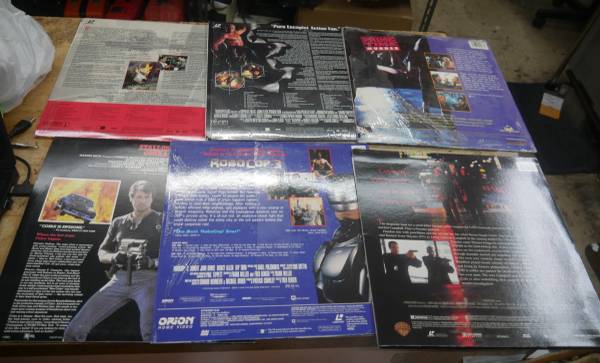 lot6 laser disc Robocop 3 ,The Glimmer Man Steven Seagal Keened Ivory Wayans, Stallone Cobra The strong arm of the law .Crime is a disease . Meet the cure. ,Prime Time Murder Tim Thomerson Anthony Finetti Sally Kirkland, Deluxe WideScreen Presentation Mario Van Peebles Solo Part Man. Part Machine. Total Weapon , Columbia Pictures Presents Roy Scheider in Blue Thunder. very good condition.