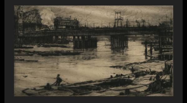 H MacBeth Raeburn etching - pencil signed - Cannon Street Railway Bridge, London.