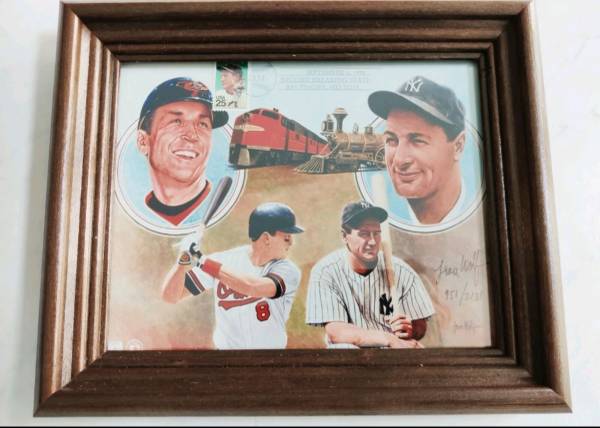 The artwork was done by the famous sports artist Leon Wolf celebrating the monumental achievement of Cal Ripken, Jr. breaking Lou Gehrig's consecutive games played streak with 2131.