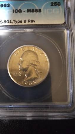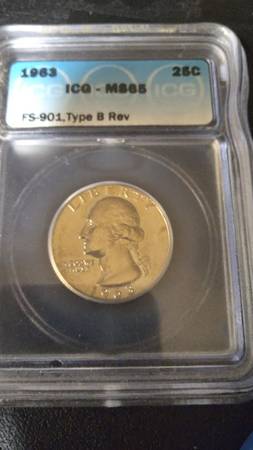 1963 Washington Silver Quarter ICG-MS65, FS-901 Type B, rare coin. This proof is 90% silver and uncirculated, this is a beautiful coin. $35