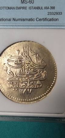 AH1187 is the year according to the Islamic (Hijri) calendar, which corresponds to the year 1774 AD //14 indicates the 14th year of the sultan at the time, Abdul Hamid I. GOOD DEAL, beautiful gold coin. Catalog #KM-398, Certification #2332933 $480 B/O