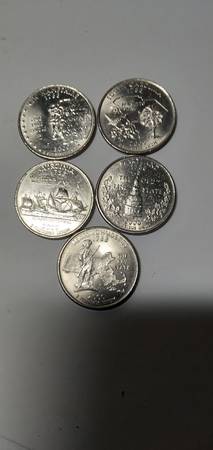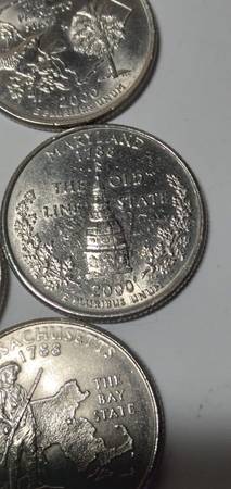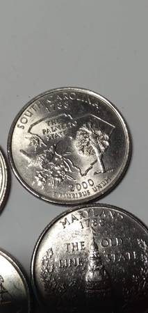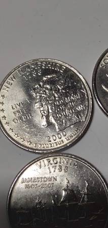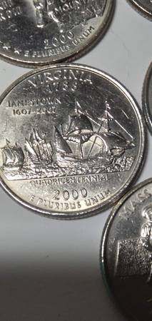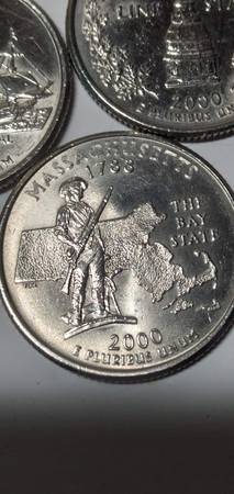 Here's some early state quarters, if you are starting a state quarter collection or just missing a couple, this is a good buy. 2000-P Virginia, 2000-P New Hampshire, 2000-P Massachusetts, 2000-P South Carolina. These coins are well circulated but for the price, nice starter coins or replacements for your collections. $3.00