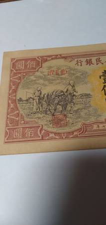 100 Yuan banknote, first series from the Peoples Bank of China. The official currency of China is the Renminbi (RMB) with Yuan being the basic unit. I purchased the coin from an auction and it isn't certified but it looks uncirculated. I purchased it for a fair price so I pass it on to you. $75