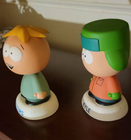 2 South Park talking bobbleheads One is of Butters and one is of Kyle. Needs batteries!!! No Box Excellent condition
