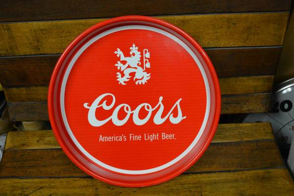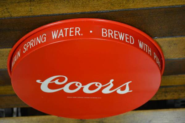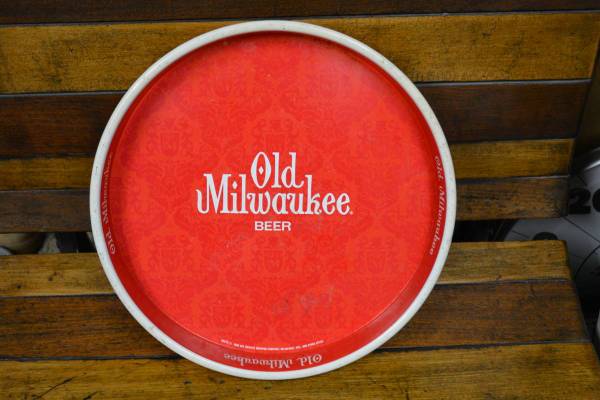 Here is a lot of 4 beer trays ranging from the late 60's to the 70's. These are the real deal and not reproductions. They came from a bar in Los Angeles and were used to carry beer and food to the tables. They are made of stamped steel with knurled edges.