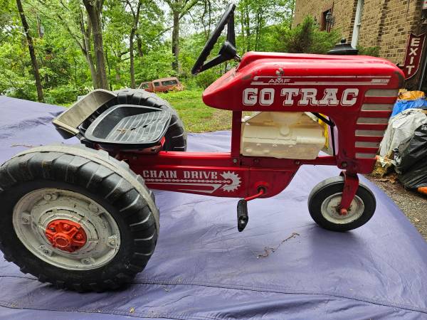 Unique pedal tractor in decent condition. I believe it is from the 60s. This one has the larger tires and the plastic engine. However, there is a crack in the engine. $175. Please call between 8am...