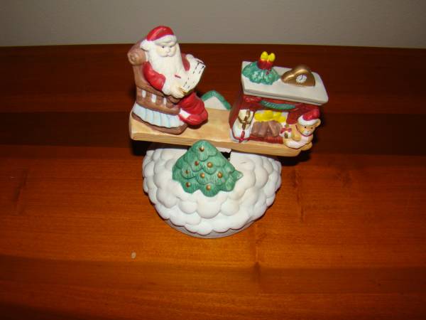 Great Christmas Display piece. Animated Musical Santa See-Saw. Moves up and down. Tune "White Christmas".