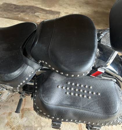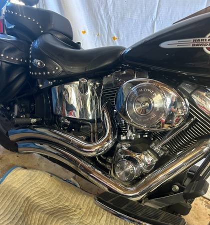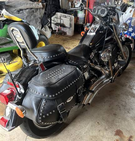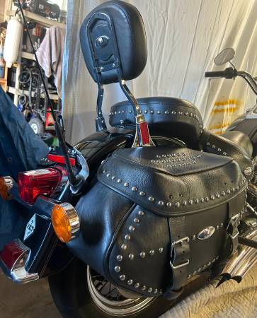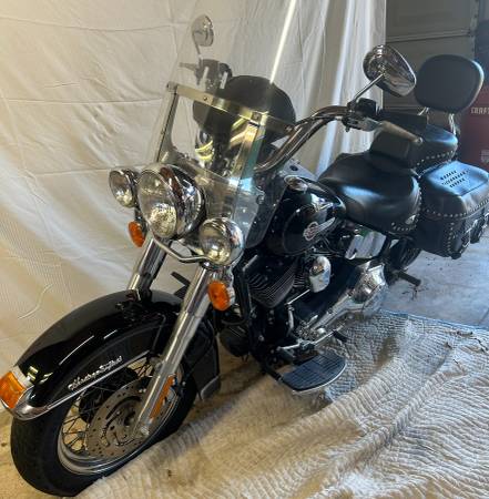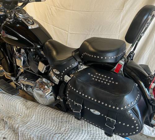 2004 HERITAGE WINDSHIELD SADDLEBAGS HD RADIO VANCE AND HINES PIPES UPGRADED PASSENGER SEAT MILEAGE 13435 GARAGE KEPT HAVE ORIGINAL PIPES AND SEAT CLEAN TITLE IN HAND EASY TO REMOVE ACCESSORIES STRIP IT DOWN NEVER BEEN WRECKED ORIGINAL OWNER HAVE ORIGINAL PAPERWORK AND MANUALS WILL NEED TIRES clean title