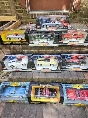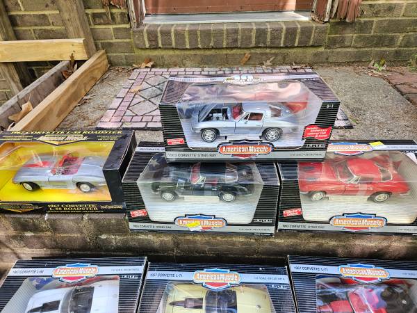 All the models are in their original boxes. Only 1 box has some damage to the plastic. 8 of the 10 have never been out of the box and have their straps in place. The models are as follows; 1967 L88 White convertible dated 1991, 1962 Red convertible dated 1998, 1967 L71 Yellow convertible dates 1996, 1967 L88 Silver convertible dated 1999, 1961 Black convertible dated 1999, 1967 L71 Black convertible dated 1992, 1961 Blue convertible dated 1998, 1963 Black Coupe dated 1993, 1963 Red Coupe dated 1993 and 1963 Siver Coupe special edition dated 2001. $550 for all. Please call show contact info