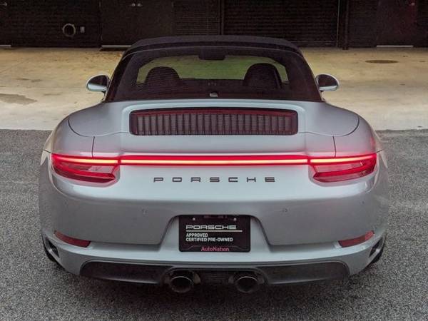 * Gts Interior Package * Black; Partial Leather Seat Trim W/Gts Alcantara Package * Transmission: 7-Speed Porsche Doppelkupplung (Pdk) * Porsche Dynamic Chassis Control (Pdcc) * 18-Way Adaptive Sport Seats Plus * Led Headlights In Black * Front Axle Lift System * Adaptive Cruise Control (Acc) * Rear Axle Steering * Extended Leather Interior Package Dashboard * Bose Surround Sound System * Premium Pkg Plus W/Adaptive Sport Seats Plus * Sportdesign Package * Illuminated Door-Sill Guards In Carbon Fiber * Lane Change Assist (Lca) * Gt Silver Metallic * Leather Seats * Navigation System * Power Steering Plus * Fuel Cap W/Aluminum Look Finish * Rear Spoiler * Convertible Soft Top * Deletion Of Model Designation * Luggage Net In Passenger Footwell * Smoking Package * Wheels Painted In Silver * Wheels: 8.5J X 20" Fr/11.5J X 20" Rr Carrera S2018Porsche911 Sophistication & understated luxury comes standard on this Porsche 911 4S. Well-known by many, the 911 has become a household name in the realm of quality and prestige. When the Porsche 911 4S was created, it was automatically enhanced by having the performance ability of all wheel drive. Not only will you notice improved steering and superior acceleration, but you can also rest easy knowing that your vehicle comes standard with increased stability and safety. It's not a misprint. And the odometer isn't broken. This is a very low mileage Porsche 911. A rare find these days. You could keep looking, but why? You've found the perfect vehicle right here.