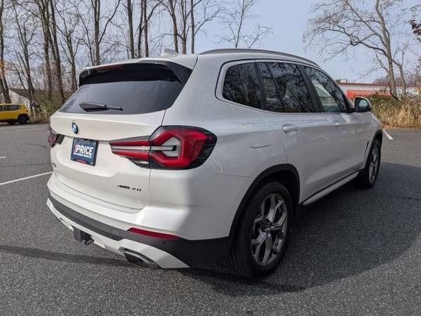 The following items have been reconditioned on this vehicle: all new tires! * Premium Package * Panoramic Moonroof * Mineral White Metallic * Panoramic Roof * Trailer Hitch * Heated Front Seats * Wireless Charging * Navigation System * Remote Engine Start * Heated Steering Wheel * Keyless Start * Rear Spoiler * Canberra Beige; Perforated Sensatec Upholstery * Fine Wood Open-Pored Ash Grain Trim * Wheels: 19" X 7.5" Y-Spoke (Style 693)This 2023 BMW X3 xDrive30i is proudly offered by BMW of Bel Air This BMW includes: PREMIUM PACKAGE Keyless Start Panoramic Roof Navigation System Heated Steering Wheel Hands-Free Liftgate Generic Sun/Moonroof Heated Front Seat(s) Power Door Locks Keyless Entry Sun/Moonroof Hard Disk Drive Media Storage Remote Trunk Release MP3 Capability PANORAMIC MOONROOF Panoramic Roof Generic Sun/Moonroof Sun/Moonroof FINE WOOD OPEN-PORED ASH GRAIN TRIM Woodgrain Interior Trim WHEELS: 19 Aluminum Wheels REMOTE ENGINE START Remote Engine Start HEATED STEERING WHEEL Heated Steering Wheel CANBERRA BEIGE, PERFORATED SENSATEC UPHOLSTERY Premium Synthetic Seats TRAILER HITCH Tow Hitch MINERAL WHITE METALLIC HEATED FRONT SEATS Heated Front Seat(s) WIRELESS CHARGING *Note - For third party subscriptions or services, please contact the dealer for more information.* This SUV is a great example of beauty and brawn with classic styling and a workhorse power plant. This BMW X3 xDrive30i's level of quality is not meant for just anyone. It's meant for the person who strives for a classy, comfortable, and luxurious car. When driving an all wheel drive vehicle, such as this BMW X3 xDrive30i, superior acceleration, traction, and control come standard. This low mileage BMW X3 has barely been touched. It's the next best thing to buying new. This BMW X3 offers the most up-to-date navigation system available so you'll always know the most efficient route to where you are going. This vehicle includes a Money-Back Guarantee* and passed our precise inspection process. Best of all the price you see is the price you pay. No haggling. No back and forth. No pressure. And this price is so good it is guaranteed. *Money-Back Guarantee is valid for 5 days or 250 miles, whichever comes first. Subject to certain terms and conditions. See store for details. Some restrictions apply. We make it easy - we'll buy your car with a check that you can deposit the same day, our pre-owned vehicles come with a 5-day return policy* and we'll even sanitize your vehicle so you can buy and service safely. Interested in the vehicle above? Shop with peace of mind, the price you see here is the price you'll pay in store. Now that's easy. Schedule an appointment today! ***WE ARE AMERICA'S LARGEST & MOST RECOGNIZED AUTOMOTIVE RETAILER*** ***ONE PRICE PRE-OWNED VEHICLES ARE PRICED JUST RIGHT*** **NO PRESSURE AND NO NEED TO WORRY** **NO HASSLE FINANCING OPTIONS** BMW of Bel Air Located at 716 Belair Rd Bel Air, MD 21014