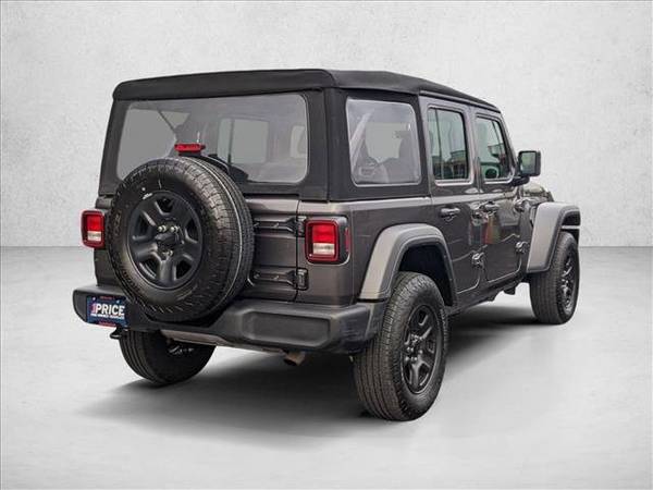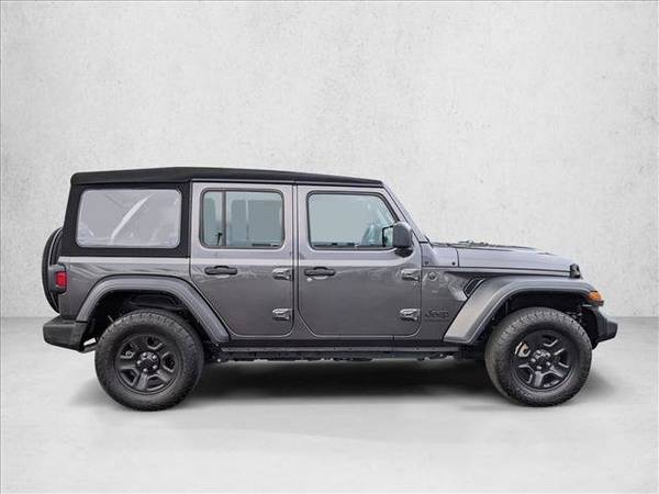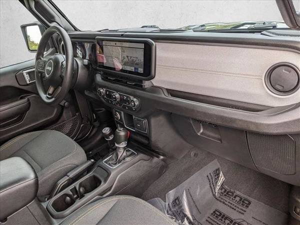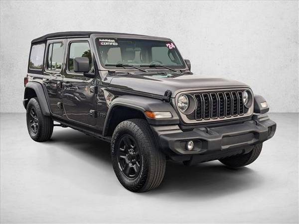 * Transmission: 8-Speed Automatic (850Re) * Granite Crystal Metallic Clearcoat * Keyless Start * Convertible Soft Top * Black; Cloth Low-Back Bucket Seats * Engine: 3.6L V6 24V Vvt Upg I W/EssThis vehicle includes a Money-Back Guarantee* and passed our precise inspection process. Best of all the price you see is the price you pay. No haggling. No back and forth. No pressure. And this price is so good it is guaranteed. *Money-Back Guarantee is valid for 5 days or 250 miles, whichever comes first. Subject to certain terms and conditions. See store for details. Some restrictions apply.Doors OFF dreams awaite, Automatic Trans, Manual Windows for easy door removal, 4x4, Autonation Certified with a 125 point inspection above and beyond Maryland State inspection Contact Mercedes-Benz of Hunt Valley today for information on dozens of vehicles like this 2024 Jeep Wrangler Sport. This Jeep includes: ENGINE: 3.6L V6 24V VVT UPG Aluminum Wheels V6 Cylinder Engine Gasoline Fuel *Note - For third party subscriptions or services, please contact the dealer for more information.* If you're going to purchase a pre-owned vehicle, why wouldn't you purchase one with CARFAX one-owner report. This SUV is a superb example of what a tough, work focused vehicle should be. Exceptional towing, acceleration and torque will help you get the job done. This 4WD-equipped vehicle will handle beautifully on any terrain and in any weather condition your may find yourself in. The benefits of driving a 4 wheel drive vehicle, such as this Jeep Wrangler Sport, include superior traction and stability. Beautiful exterior. Clean interior. This Jeep Wrangler is so immaculate it is practically new. Well-equipped, well-cared for and still covered under the manufacter's factory warranty. The upgraded wheels on this vehicle offer improved handling and an attractive appearance.