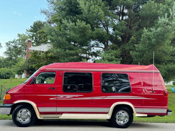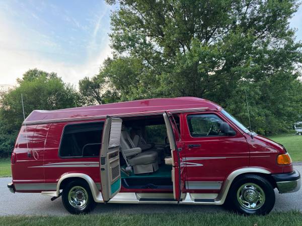 2001 Dodge Ram B3500 Conversion Van High Roof Turtle Top Extended Van Limited Edition EVO BY SHERROD with 106,000 Miles. The van has the reliable strong V8, 5.9 Liter Engine.