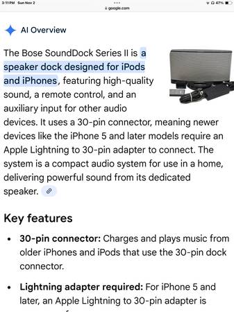 Excellent condition BOSE SOUND DOCK. WITH POWER SUPPLY and IPod. Call Paul 410-790-570 five.