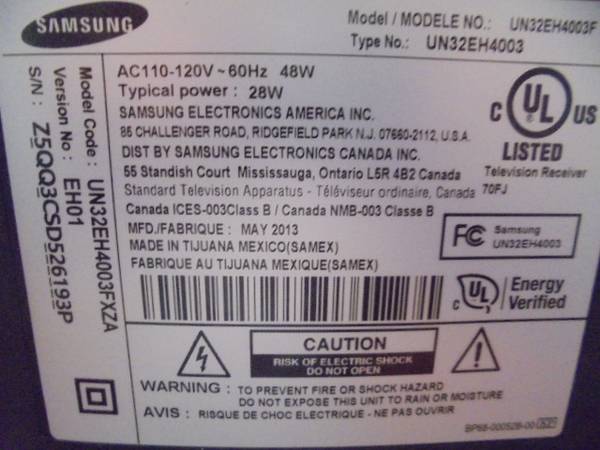32" diagonal screen. A nice size that works great. Orginal paperwork and mauals. Not a smart tv. No texts. Call on land line or email.