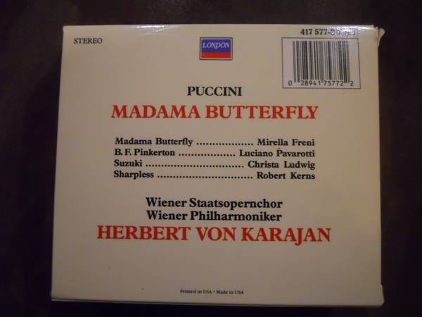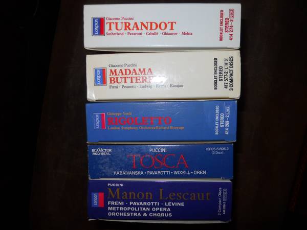 5 opera sets on CD, all in beautiful condition: Puccini - Madama Butterfly - Pavarotti, Freni, et al - Wiener Philharmoniker, Von Karajan Puccini - Manon Lescaut - Pavarotti, Freni, et al -...