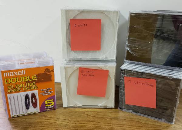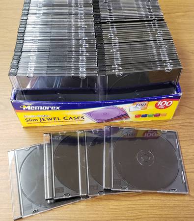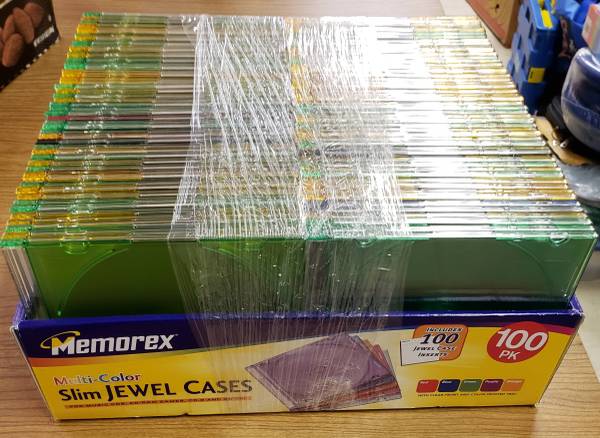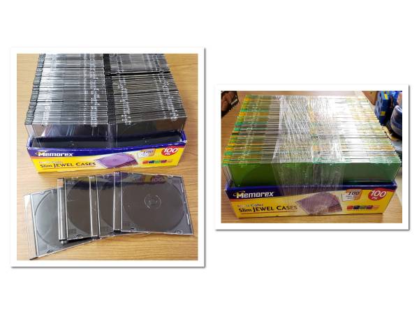 100 CD/DVD Thin Jewel Cases in batches of 100 assorted black/colors for only $15 - That's only 15 cents ea. !