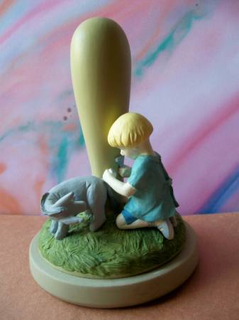 5 inches tall, with 3-1/2 inch round cookie stamp base. Cute scene, with Christopher Robin trying to repair Eeyore's tail.