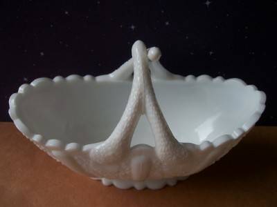 The basket is 5-3/4 inches long and 4 inches high. No chips, etc.