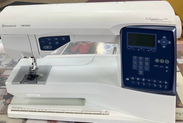 Husqvarna Viking Sapphire 830 Sewing and Quilting Machine. In very good used condition. Comes with cord and peddle. No disc or owners manual. $300/OBO Thanks for looking!