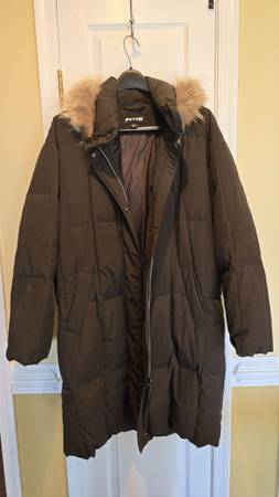 I will not reply to Emails/Text without the Name and phone number!!! Down coat Size XL, Chocolate brown. Has removable hood with natural RACOON fur Made in ITALY See pictures Asking $165 or BO...