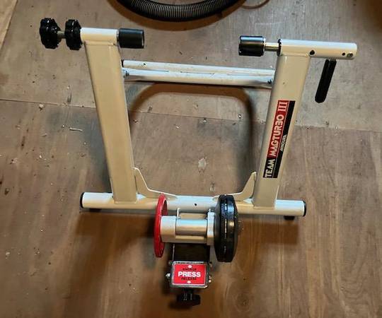 I have a Team Magturbo III Bicycle trainer. In great shape that I've had for about 3-4 yrs. Super easy to set up. I used it in the colder months so I could continue to ride. I had two bikes hooked up to it, an old 10 speed and a newer mountain bike and they both worked well. I recently bought a peddle assist electric bike and no longer need. Price is $15. Must pick up near HCC in Bel Air, Md. Text 410-877-four7two5. Thanks.