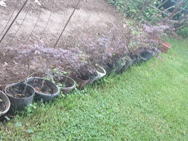 Healthy and hardy Japanese Red Maple trees Bloodgood red all season Potted in soil 2-3' tall Drought tested for resilience $40/tree Key words: Ornamental decorative landscape landscaping seedling...