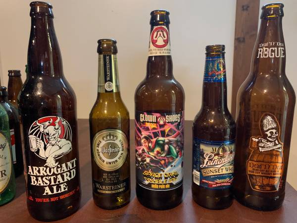 21 Empty Beer Glass Bottles Collection 1 Empty Dr Pepper Glass Bottle Collection Take all for $10.00
