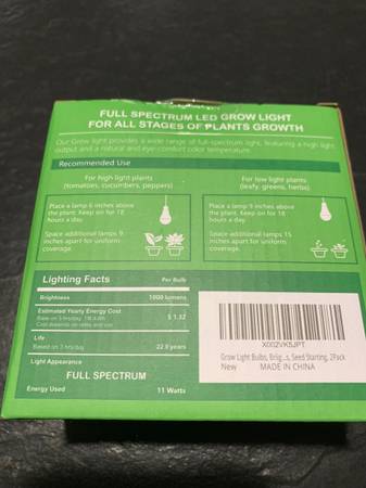 Grow Light LED, Full Spectrum Light Bulb For Plants 2 Bulbs, Never Used, Sealed
