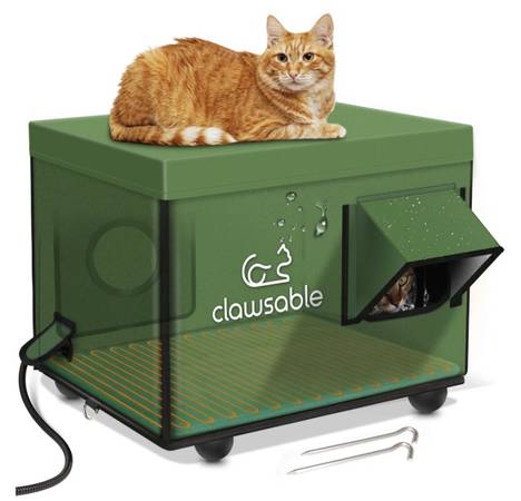 I bought this insulated heated cat house for outside winter and I never really used - 100% Waterproof, Safe Escape Door, Insulated Outdoor Cat Shelter with Heater for Feral Barn Cat Kitty (Forest Green, 12"x16"x18")