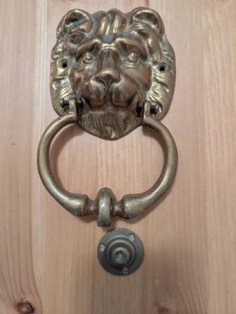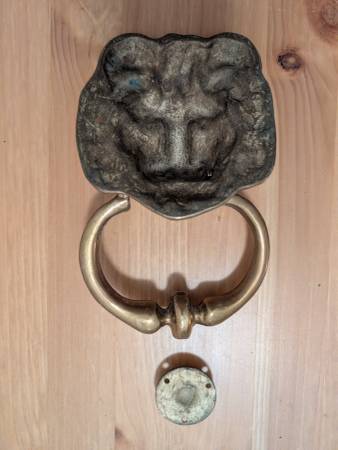 Die cast solid brass lion head door knocker with strike plate. Very good condition with minimal signs of wear commensurate with age. Never directly exposed to the elements. Measures approximately 7"...
