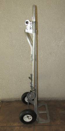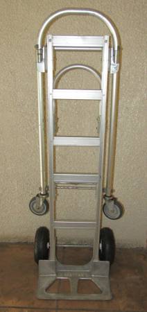Aluminum hand truck for transporting heavy loads arranged horizontally or vertically