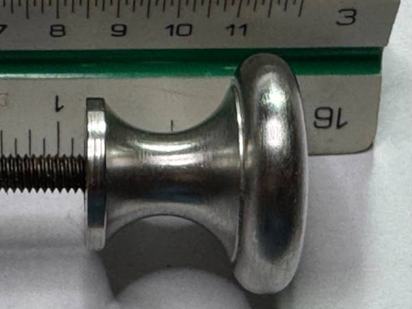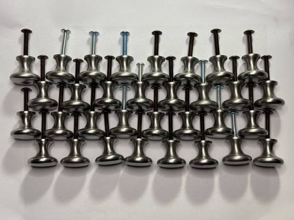 The product is a brushed satin nickel kitchen cabinet drawer knob pull hardware. It is designed to be a sleek and elegant addition to cabinets, with a silver color and a satin finish. Made of nickel material, this knob is .875 inches in height and 1 inch in width, providing a modern and stylish touch to any kitchen or cabinet. Ideal for home improvement projects, this cabinet knob is a practical and decorative choice for enhancing the look of your cabinets. QUANTITY 32