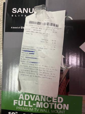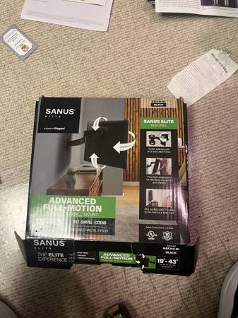 Sanus TV MOUNT, brand new in box, for 19-43" TV, advanced full motion, tilt ,swivel , extend. Extends 16" ......brand new in box, see receipt for 100 Sell price $35