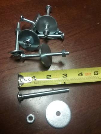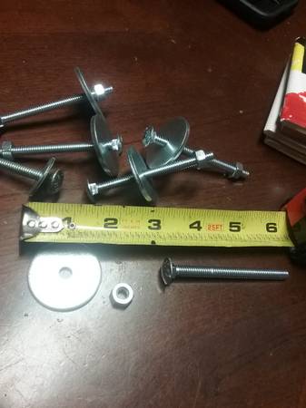 Selling buy the set (3 piece) Bolt washer and nut Bolt 1/4" thick, 3" long, standard threads ,,,, with mushroom head with 1/4" by 1/8" square neck. Washer thicker than most 1.5" diameter and 1/8"...