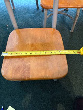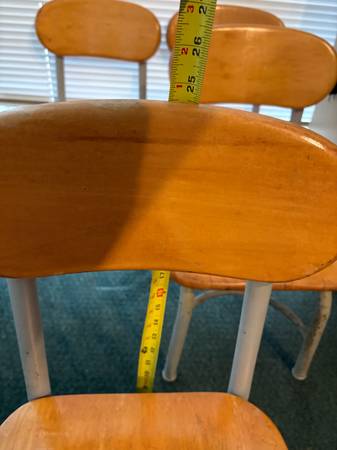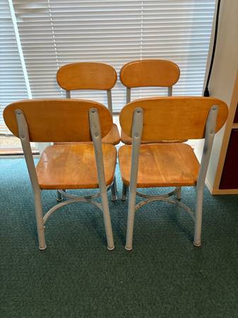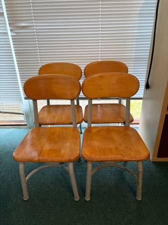 4 Vintage Children's Chairs. Seat 13" wide x 12 1/2" long x 12 1/2" height. Seat back 24 1/2" height. Built solid. Price IS FIRM. Will NOT SHIP or BARTER. CASH ONLY upon pick up.