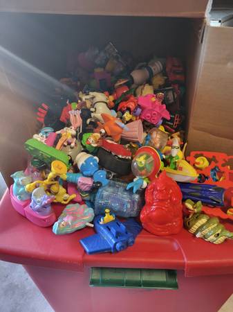 This is over 100 mcdonalds, disney, and other toys. Great for little kids. Used. Ages 4+