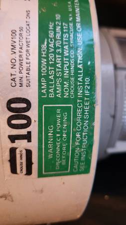 Crouse Hinds VMV175 Industrial Explosion Proof Wet Location Lamp Light. This untested lighting fixture is designed to withstand the toughest working conditions and is perfect for use in facilities that require reliable and safe illumination. Made in the United States. Please text if just interested in globe fixture and not the base.